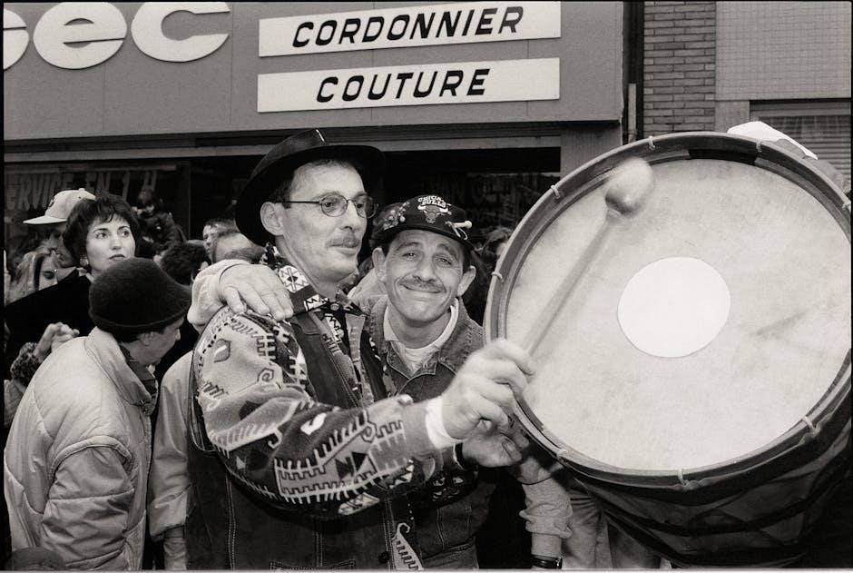 Drum corps organizations play a vital role in community engagement, often participating in local parades, festivals, and charitable events. These groups foster a sense of pride and unity, connecting with audiences through dynamic performances. Many corps offer educational workshops and clinics, providing opportunities for young musicians to learn from experienced performers. Outreach programs also aim to promote inclusivity, encouraging diverse participation and breaking down cultural barriers. By engaging with communities, drum corps inspire future generations and strengthen local bonds; Their presence enriches cultural landscapes, making music accessible to all. This commitment to outreach ensures the continued growth and relevance of drum corps in society.